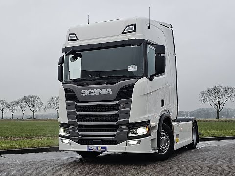Number of axles: 2, Configuration: 4x2, Own weight: 8385 kg, Gross vehicle weight: 19000 kg, Total fuel capacity: 1100 litre, 2nd fueltank, Fifth wheel height: 116 cm, fifth-wheel: Fixed, Diff. locks: 1, Suspension type: air suspension, Cabin type: Sleeping cabin, Cruise control, Tacho, Digital tachograph, Airconditioning, Parking Airco, Parking heater, Electric windows, Electric mirrors, Radio/cassette, GPS navigation, Color: white, Heated mirrors, Lighting type: Led lamps, Laneassist, Climatecontrol, Seat heating, Bluetooth, Engine capacity: 338 Kw (453 Hp), Fuel type: diesel, Euro: 6, Gearbox kind: Opti-cruise, Gearbox make: Scania, Number of Gears: 12, Add. break system, Retarder make: Scania, Power steering, ABS, ASR, Starter battery, Central locking, Seats configuration: 1+1, Seat cover: cloth, Chair adjustment: Manually